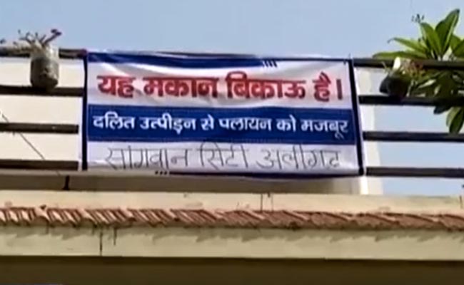 यूपी के अलीगढ़ शहर में 70 दलित परिवारों ने घर के बाहर 'मकान बिकाऊ है' के पोस्टर लगाए हैं. बताया जा रहा है कि यहां पर दलित समाज के लोगों ने बिल्डर के उत्पीड़न से तंग आकर यह फैसला किया है.अलीगढ़ शहर के दलित परिवारों ने अपने घरों के आगे पोस्टर लगा रखे हैं जिसमें साफ़ लिखा है, "मकान बिकाऊ हैं.. हम दलित उत्पीड़न से परेशान हैं." मामला शहर की सांगवान हाउसिंग सोसायटी का है, इसकी शुरुआत हुई पिछले माह अंबेडकर जयंती से हुई. अंबेडकर जयंती के उपलक्ष में कॉलोनी के दलित लोग पार्क में एक भंडारा करने जा रहे थे लेकिन बिल्डर ने भंडारा नहीं होने दिया गया. आरोप है कि सोसायटी ने भंडारा नहीं करने दिया और पार्क में पानी भर दिया. यही वजह है कि अब यहां के दलित परिवार से सोसाइटी छोड़कर जाना चाहते हैं..