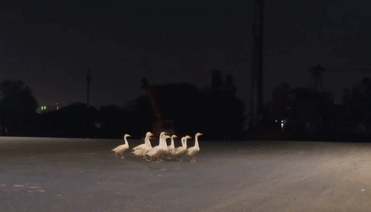 सुबह करीब साढ़े 5 का वक्त है. आसमान में सूरज के उजाले में अभी वक्त है. बाहर चौड़ी सड़क पर बत्तखों का एक झुंड सड़क पार कर रहा है. या यूं कहें कि मॉर्निंग वॉक कर रहे हैं. सामने से आती गाड़ियों की लाइट उन्हें थोड़ा चौंकाती हैं. पर वो धीरे-धीरे और अनुशासन के साथ सड़क पार कर रहे हैं.