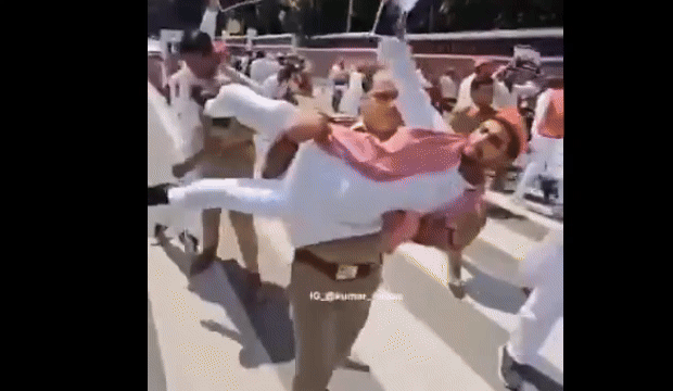 पुलिस का जवान युवक को अपनी गोद में इस तरह उठाकर भागता है मानो वो किसी पुतले को गोद में उठाकर भाग रहा हो. इस वीडियो को शेयर करते हुए अखिलेश यादव ने लिखा- "बेरोज़गारी के मारे उप्र के युवा बेचारे इतने हल्के हो गये हैं कि पुलिस उन्हें गोदी में उठाकर ले जा रही है. लेकिन भाजपा याद रखे युवाओं का आक्रोश बहुत भारी पड़ेगा."