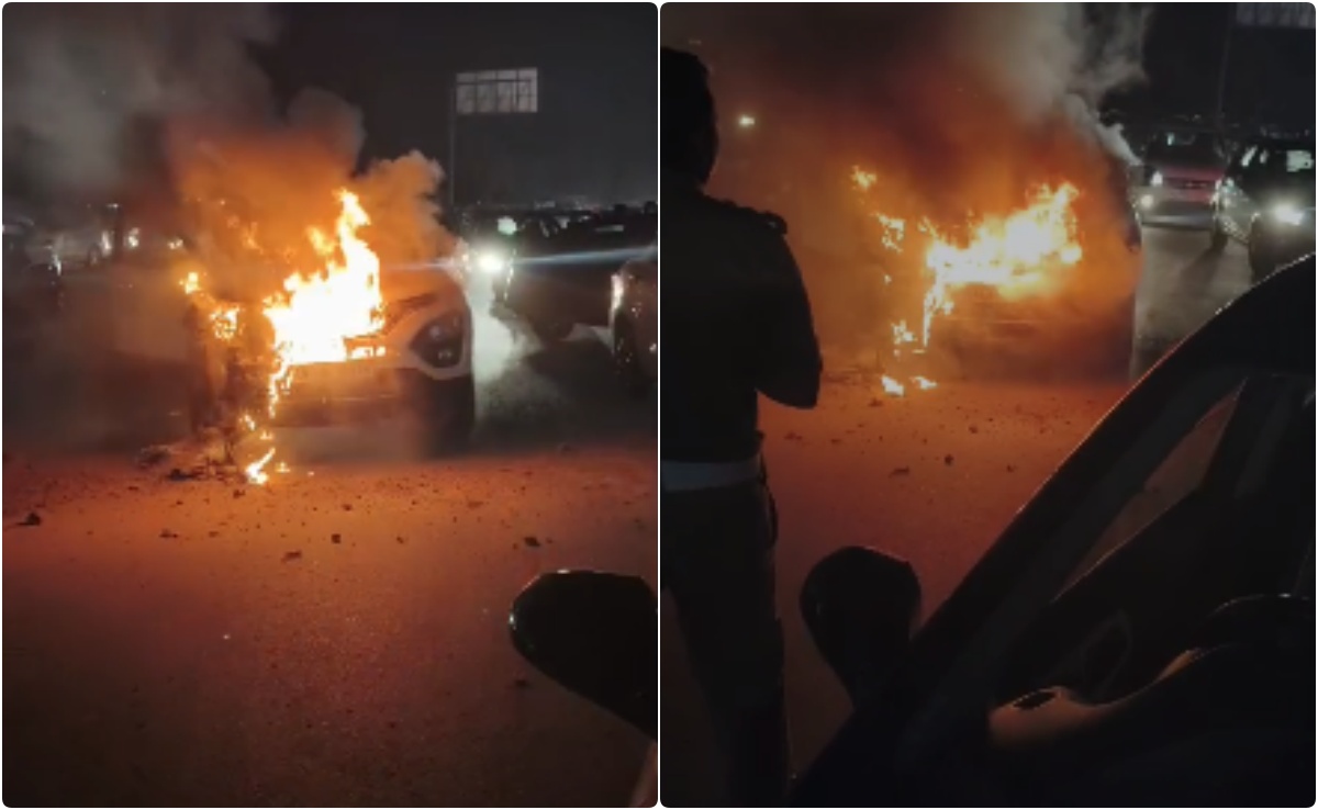 उत्तर प्रदेश के ग्रेटर नोएडा वेस्ट में सोमवार की शाम उस वक्त हड़कंप मच गया, जब गौर सिटी चौक के पास नोएडा से इतेहरा जाने वाली सड़क पर एक टाटा कंपनी की पॉपुलर हैरियर कार अचानक से धू-धू कर जलने लगी. आग की तेज लपटों ने कुछ ही देर में पूरी कार को अपनी चपेट में ले लिया. गनीमत ये रही कि कार में सवार शख्स वक्त रहते बाहर आ गया और उसकी जान बच गई.