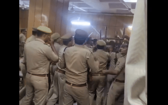 जिला जज और वकील के बीच में जमानत को लेकर कहासुनी हो गई, इसके बाद वहां भारी संख्या में वकील इकट्ठा हो गए. इस बारे में जब पुलिस को सूचना दी गई, तब पुलिस मौके पर पहुंची. जिसके बाद पुलिस बलपूर्वक वकीलों को हटाने लगी. इस दौरान एक सिपाही कुर्सी लेकर वकीलों के पीछे भागता दिखाई दिया है.