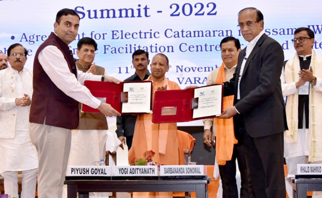 भारतीय जलमार्ग प्राधिकरण की तरफ से दो दिवसीय पीएम गति शक्ति मल्टी मॉडल जल मार्ग शिखर सम्मेलन 2022 का उद्घाटन समारोह पंडित दीन दयाल उपाध्याय हस्तकला संकुल में शुक्रवार को आयोजित हुआ. केंद्रीय बंदरगाह जहाजरानी और जलमार्ग मंत्रालय के अंतर्गत आयोजित इस सम्मेलन में मुख्यमंत्री योगी आदित्यनाथ सहित भारत सरकार के वाणिज्य व उद्योग मंत्री पीयूष गोयल, केंद्रीय जलमार्ग मंत्री सर्वानंद सोनोवाल के अलावा बांग्लादेश के मंत्री खालिद मोहम्मद चौधरी भी शामिल हुए. सम्मेलन में केंद्र और प्रदेश सरकार के साथ ही उद्योग जगत से जुड़े लोगों के बीच पीएम गति शक्ति राष्ट्रीय मास्टर प्लान साझा किया जाना है. सम्मेलन में अपने संबोधन के दौरान मुख्यमंत्री ने बताया कि बीते साढ़े पांच साल में उत्तर प्रदेश ने इन्फ्रास्ट्रक्चर डेवलपमेंट के क्षेत्र में नई ऊंचाइयों को प्राप्त किया है.
