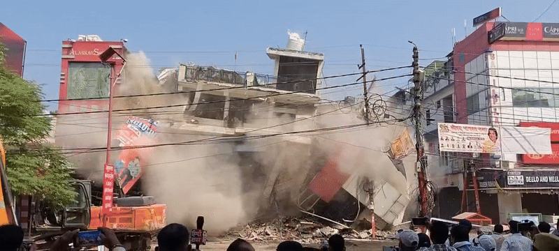 यूपी में अवैध निर्माण के खिलाफ योगी सरकार का एक्शन जारी है. इसी क्रम में मेरठ में प्रशासन ने उन इमारतों पर बुलडोजर चलवाया जो अवैध रूप से बनाए गए हैं. बुलडोजर एक्शन के बाद अवैध कॉम्प्लेक्स ताश के पत्तों की तरह ढह गए. इसके बाद धूल के गुब्बार ने पूरे इलाके को आगोश में ले लिया. मेरठ में हुई बुलडोजर की इस कार्रवाई में प्रशासन ने एक साथ कई बुलडोजर उतारे थे.