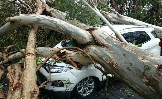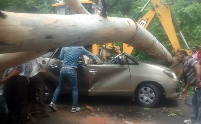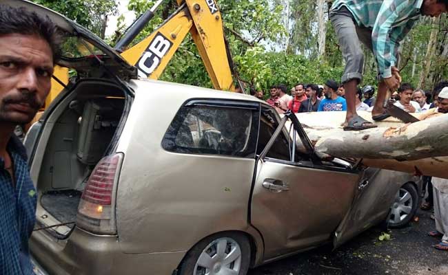 आंधी के कारण पेड़ इनोवा पर जा गिरा