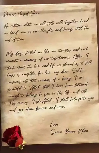 सायरा ने दिलीप कुमार के नाम एक भावुक कर देने वाली चिठ्ठी लिखी.
