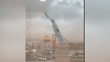 ब्राजील में आए एक शक्तिशाली तूफान ने रियो ग्रांडे डो सुल के गुआइबा शहर में कुछ ऐसा रूप दिखाया जिसने सबको हैरत में डाल दिया. यहां हवाओं ने रौद्र रूप दिखाया और अमेरिका की तर्ज पर बनी स्टैच्यू ऑफ लिबर्टी की 24 मीटर लंबी प्रतिकृति (रेप्लिका) एक हवन मेगास्टोर के बाहर ढह गई. इस चौंकाने वाले लम्हें को कई लोगों ने अपने फोन में वीडियो में रूप में कैद किया गया, जो तेजी से सोशल मीडिया पर वायलर हो रहा है. इस वायरल वीडियो में साफ नजर आ रहा है कि स्टैच्यू ऑफ लिबर्टी की यह विशाल संरचना एक खाली पार्किंग प्लेस में धीरे-धीरे आगे की ओर झुकती दिखती है और आखिर में जमीन पर गिर जाती है.