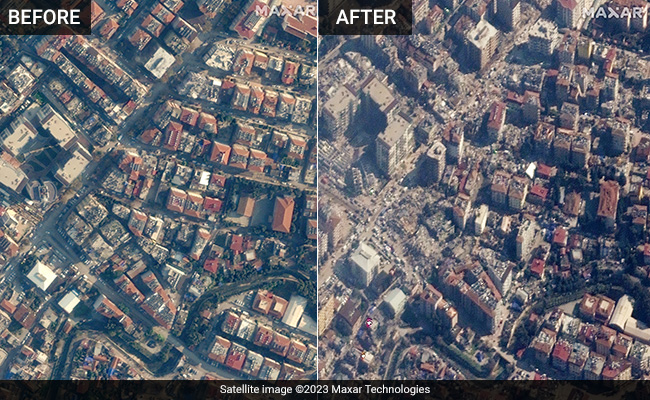 तुर्की और सीरिया में 15,000 से ज़्यादा जानें लील लेने वाले भीषण भूकंप के चलते पूरी की पूरी बस्तियां खंडहर हो गई हैं, और बड़े-बड़े शहर मलबे के ढेर में तब्दील हो गए हैं. सैटेलाइट से हासिल तस्वीरों में देखा जा सकता है कि दक्षिणी हिस्से के अन्ताक्या और काहरामनमारस सबसे ज़्यादा प्रभावित इलाकों में शामिल हैं, जहां ढेरों ऊंची-ऊंची इमारतें ज़मीन्दोज़ हो गईं.