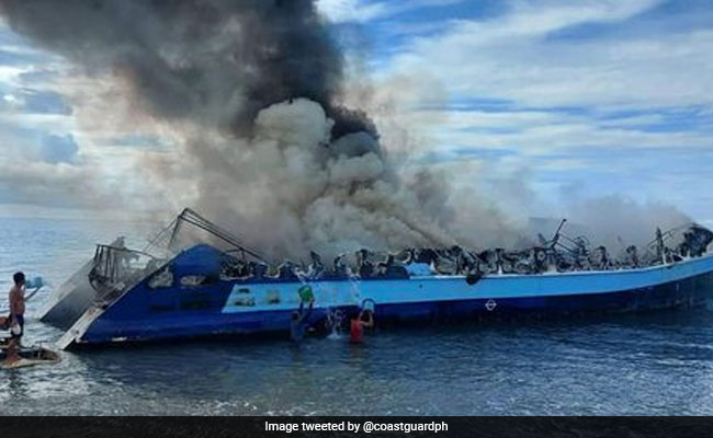 फिलिपीन्स (Philippines) में एक 157 लोगों को ले जा रहे एक जहाज़ में आग लगी गई. इस हफ्ते की शुरुआत में यह हादसा राजधानी मनीला पहुंचने से 60 किलोमीटर पहले हुआ. कोस्ट गार्ड ने इस छोटे यात्री जहाज़ की कई तस्वीरें शेयर की हैं जिसमें जहाज़ से कूदे लोगों को लाइफ जैकेट पहने समुद्र में मदद के इंतजार के लिए तैरते देखा जा सकता है. दो मंजिला इस जहाज़ से काला धुंआ निकलता देता जा सकता है.