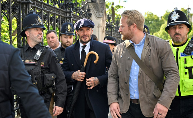 47 वर्षीय बेकहैम को एक टोपी, सूट और टाई पहने देखा गया. वह भी हजारों लोगों की भांति महारानी के सम्मान में खड़े दिखाई दिए. ब्रिटेन में सबसे ज्यादा समय तक राज करने वाली महारानी का पिछले हफ्ते स्कॉटलैंड स्थित बाल्मोरल कैसल में 96 वर्ष की उम्र में निधन हो गया था. उनके ताबूत को स्कॉटलैंड से सड़क और हवाई मार्ग के माध्यम से बकिंघम पैलेस लाया गया था.