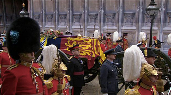 - महारानी का ताबूत उसी तोप गाड़ी पर लाया और ले जाया गया जिसे महारानी विक्टोरिया के अंतिम संस्कार के लिए प्रयोग किया गया था.