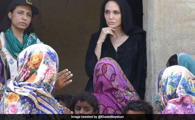 एंजलीना जोली शरणार्थियों के लिए यूनाइटेड नेशन्स हाई कमिश्नर की प्रतिनिधि हैं. उन्होंने दक्षिणी सिंध प्रांत का दौरा किया. यह सबसे बुरी तरह से प्रभावित इलाकों में से एक है. यहां एंजलीना ने विस्तापित बाढ़ प्रभावितों से उनके कैंपों में मुलाकात की.