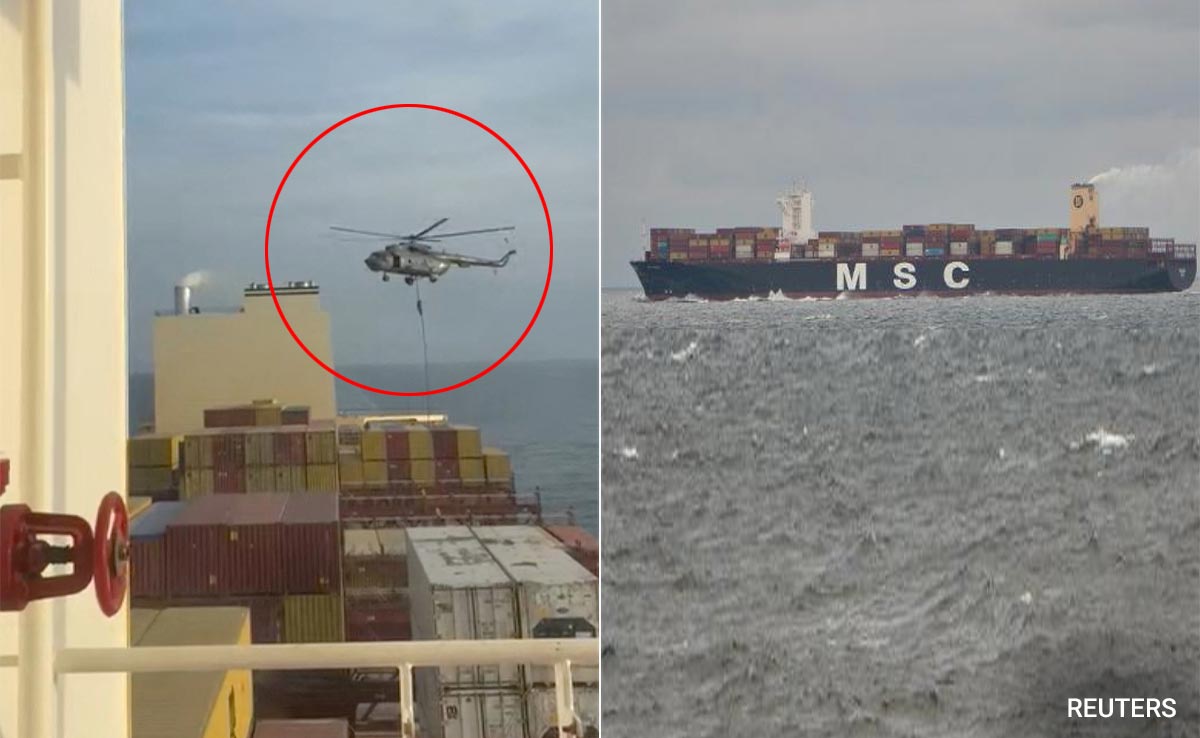 शनिवार को यूएई तट पर ईरान के रिवोल्यूशनरी गार्ड्स ने इजरायल का एक कंटेनर जहाज जब्त कर लिया. इस जहाज पर सवार 25 चालक दल के सदस्यों में से 17 भारतीय हैं. सूत्रों ने यह जानकारी दी. देश की सरकारी स्वामित्व वाली IRNA समाचार एजेंसी ने बताया कि कंटेनर जहाज MSC Aries को होर्मुज जलडमरूमध्य के पास एक "हेलिबॉर्न ऑपरेशन" चलाकर जब्त कर लिया गया था .