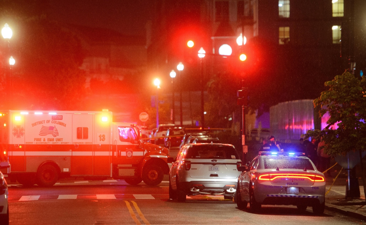 अमेरिका के वाशिंगटन में एक यहूदी संग्रहालय के बाहर इजराइली दूतावास के दो कर्मचारियों की हत्या के बाज पहुंची पुलिस.