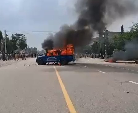 प्रदर्शनकारी भारत बॉर्डर के नजदीक आकर भंसार ऑफिस जलाने लगे हैं. बॉर्डर के पास प्रदर्शनकारियों के आने से इंडिया साइड से बॉर्डर पर बेहद कड़ी सुरक्षा व्यवस्था कर दी गई है.