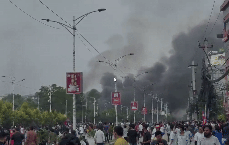 VIDEO | Nepal: Protesters set the Supreme Court in Kathmandu on fire amid anti-government protests.#Nepalprotest