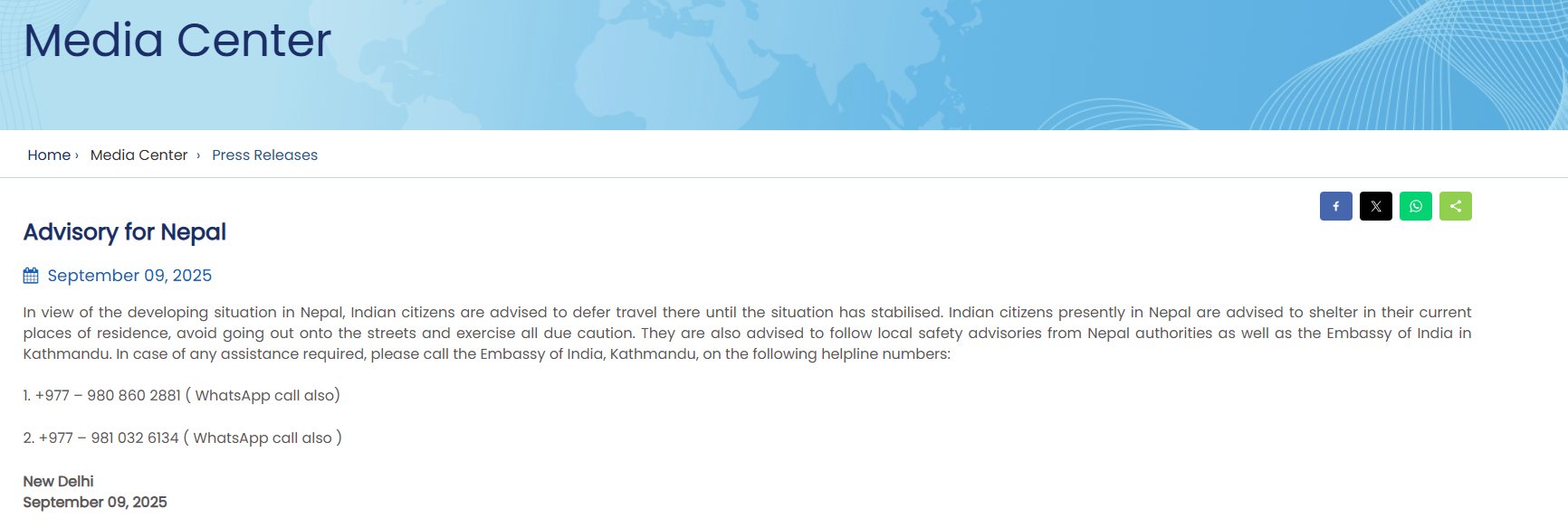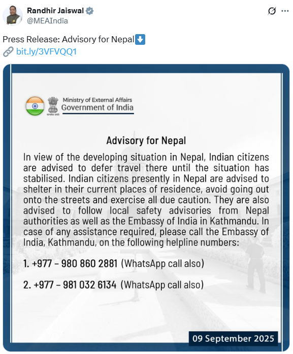 हिमाचल प्रदेश और पंजाब से लौटने पर आज सुरक्षा मामलों की कैबिनेट समिति की बैठक में नेपाल के घटनाक्रम पर चर्चा हुई. नेपाल में हिंसा हृदयविदारक है. मुझे इस बात का दुःख है कि कई युवाओं ने अपनी जान गंवाई है. नेपाल की स्थिरता, शांति और समृद्धि हमारे लिए अत्यंत महत्वपूर्ण है. मैं नेपाल के सभी भाइयों और बहनों से विनम्रतापूर्वक शांति का समर्थन करने की अपील करता हूं.