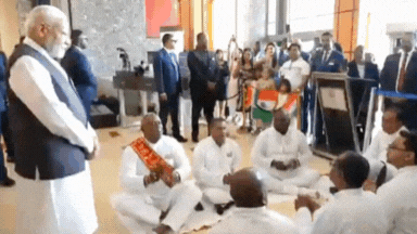 त्रिनिदाद एंड टोबैगो के विदेश और कैरिकॉम मामलों के मंत्री सीन सोबर्स ने पीएम मोदी से मुलाकात की और उन्हें विमान की सीढ़ियों के नीचे उनके लिए बिछाए गए रेड कार्पेट तक ले गए, जहां पीएम प्रसाद-बिसेसर फूलों का गुलदस्ता लेकर उनका इंतजार कर रहे थे. सफेद कपड़े पहने तीन बच्चों ने उन्हें फूल भेंट किए और उनके साथ तस्वीरें खिंचवाईं.