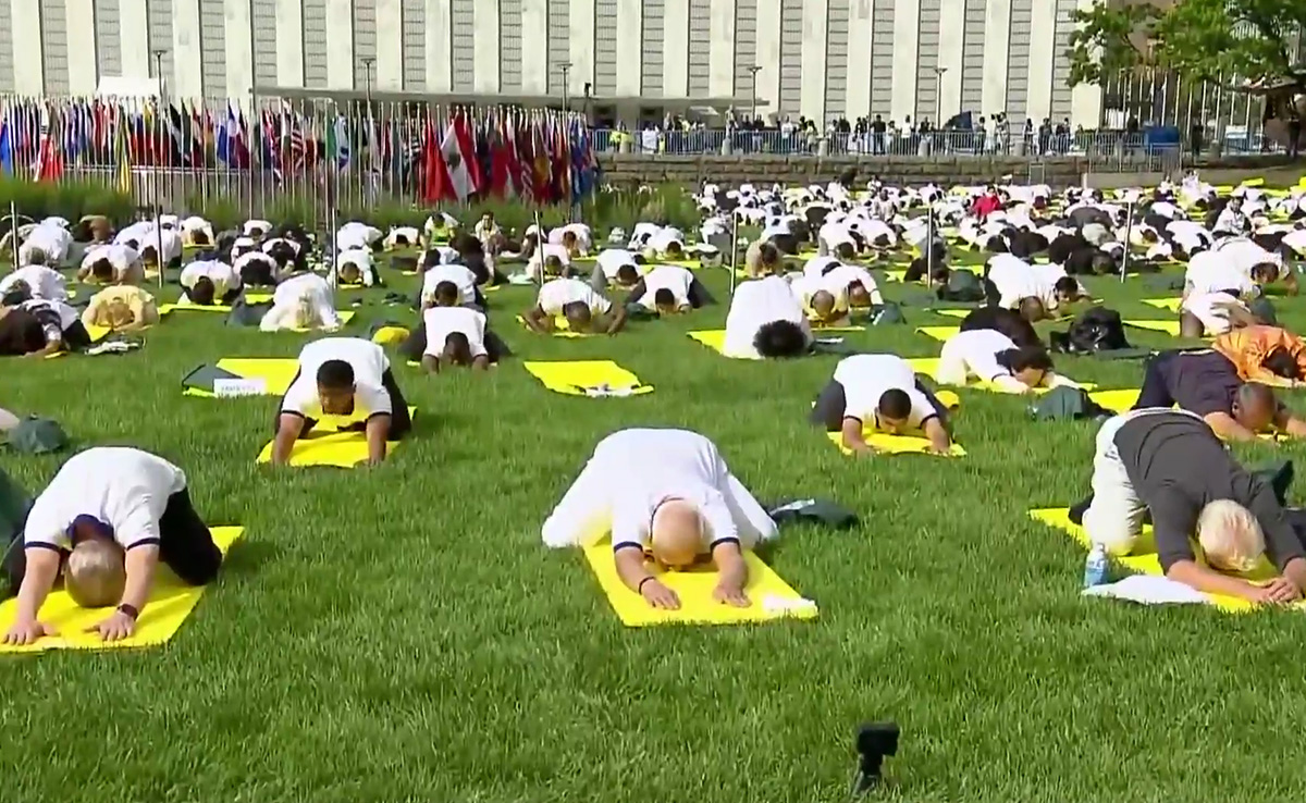 पीएम मोदी ने यूएन के नॉर्थ लॉन में योग दिवस पर भद्रासन, ऊष्ट्रासन, उत्तान शिशुनासन, भुजंग आसन, पवन मुक्त आसन और शव आसन किए.