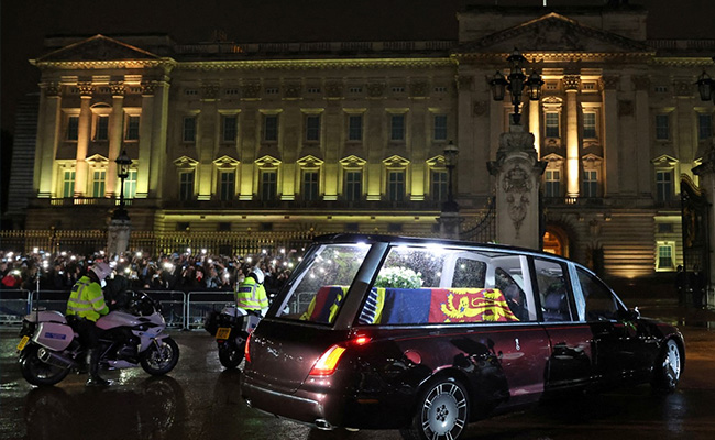 महारानी एलिजाबेथ द्वितीय का पार्थिव शरीर मंगलवार को लंदन के बकिंघम पैलेस पहुंच गया है. ब्रिटेन की दिवंगत महारानी एलिजाबेथ का पार्थिव शरीर मंगलवार शाम को स्कॉटलैंड से लंदन पहुंचा. उनके पार्थिव शरीर को अंतिम रात बकिंघम पैलेस में रखा जाएगा. महारानी का पार्थिव शरीर रात भर बकिंघम पैलेस के ‘बो रूम' में रखा जाएगा, जहां शाही परिवार के सदस्य उन्हें श्रद्धांजलि अर्पित करेंगे. बुधवार को एक शव यात्रा निकाली जाएगी, जिसके तहत महारानी के पार्थिव शरीर को बकिंघम पैलेस से वेस्टमिंस्टर एबे (संसद परिसर) ले जाया जाएगा.