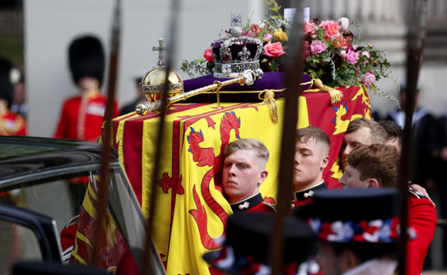 1. महारानी एलिज़ाबेथ द्वितीय के जनाज़े के दौरान उनके ताबूत के उपर रखे उनके शाही ताज को साफ देखा जा सकता है. .