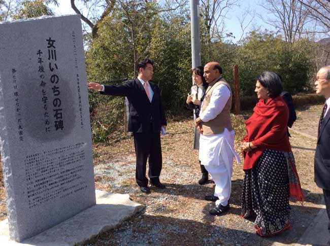 गृहमंत्री राजनाथ सिंह ने 2011 में जापान में आई भयंकर सुनामी के दौरान सबसे ज्यादा तबाह हुए शहरों में एक ओनगावा का आज दौरा किया।