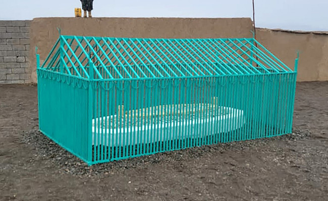 अधिकारियों द्वारा जारी तस्वीरें दिखाती हैं कि तालिबान के नेता एक सादा सफेद ईंटों से बनी कब्र के नज़दीक जमा हैं, जो एक हरे रंग के मेटल के बाड़े के बीच में है.