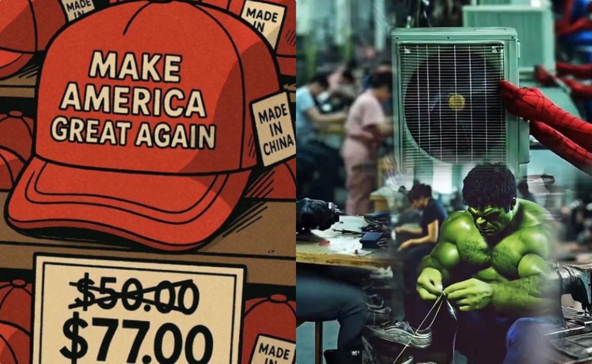 इन मीम्स जरिए ये बताया जा रहा है ट्रैरिफ के बाद अमेरिकी कंपनियां चीन की जगह अपने ही देश में सामान बना रही है. लेकिन उनके पास हुनर वाले लोग नहीं है. ऐसे में सुपर हीरो काम पर लगे हुए हैं. जो फैक्ट्रियां बंद हो गई थीं उन्हें फिर शुरू किया गया है. जहां मजदूर के तौर पर अमेरिका के फेमस मूवी सुपर हीरो अब काम कर रहे हैं.