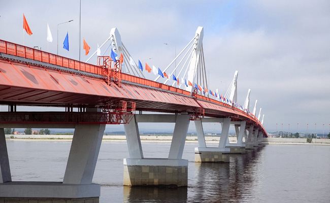 ब्लागोवेश्चेंस्क में शुक्रवार को एक समारोह में इस पुल को मालवाहक ट्रैफिक के लिए खोल दिया गया. पहले ट्रकों का स्वागत आतिशबाज़ी के साथ हुआ.