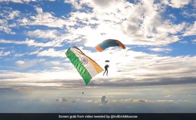 दुनिया के कई देशों में स्तिथ भारतीय दूतावासों में आज़ादी का अमृत महोत्सव (Azadi Ka Amrit Mahotsav) मनाया जा रहा है. भारत की आजादी के 75 साल को हर दूतावास में अनोखे तरीके से मनाने की कोशिश की गई. लेकिन रूस (Russia) में मौजूद भारतीय दूतावास (Indian Embassy) ने इस मौके को बेहद खास बना दिया. रूस में ज़मीन से सैकड़ों किलोमीटर उपर पैराशूट से तिरंगा (Tiranga) लहराया गया. उगते सूरज और नीचे हरी धरती के बीच लहराता तिरंगा बेहद भव्य लगा. रूस में मौजूद भारतीय दूतावास ने इस अवसर की वीडियो शेयर की है. इस वीडियो के कैप्शन के तौर पर लिखा गया. रूसी आकाश में ऊंचाई पर लहराता तिरंगा हमें ऐसे मौके पर गर्व करने का मौका दे रहा है जब हम आजादी का अमृत महोत्सव मना रहे हैं और हर घर तिरंगा अभियान जारी है.