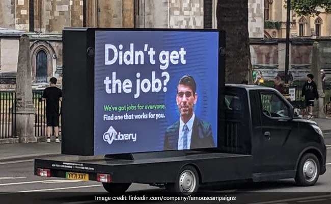 राजनीती क्रूर होती है. सोमवार को ब्रिटेन (UK) की पूर्व विदेश मंत्री लिज ट्रस (Liz Truss) ने भारतीय मूल के पूर्व वित्त मंत्री ऋषि सुनक (Rishi Sunak) को प्रधानमंत्री (PM) पद के लिए हरा दिया. इसके बाद ब्रिटेन में नौकरियां देने वाली एक कंपनी CV Library ने ऋषि सुनक (Rishi Sunak) की तस्वीर का प्रयोग करते हुए अपना प्रचार शुरू किया. नौकिरयां ढूंढने की वेबसाइट चलाने वाली इस कंपनी ने अपने बिलबोर्ड पर पूर्व वित्त मंत्री ऋषि सुनक की तस्वीर छापी और इसे ब्रिटेन की सड़कों पर घुमाया.