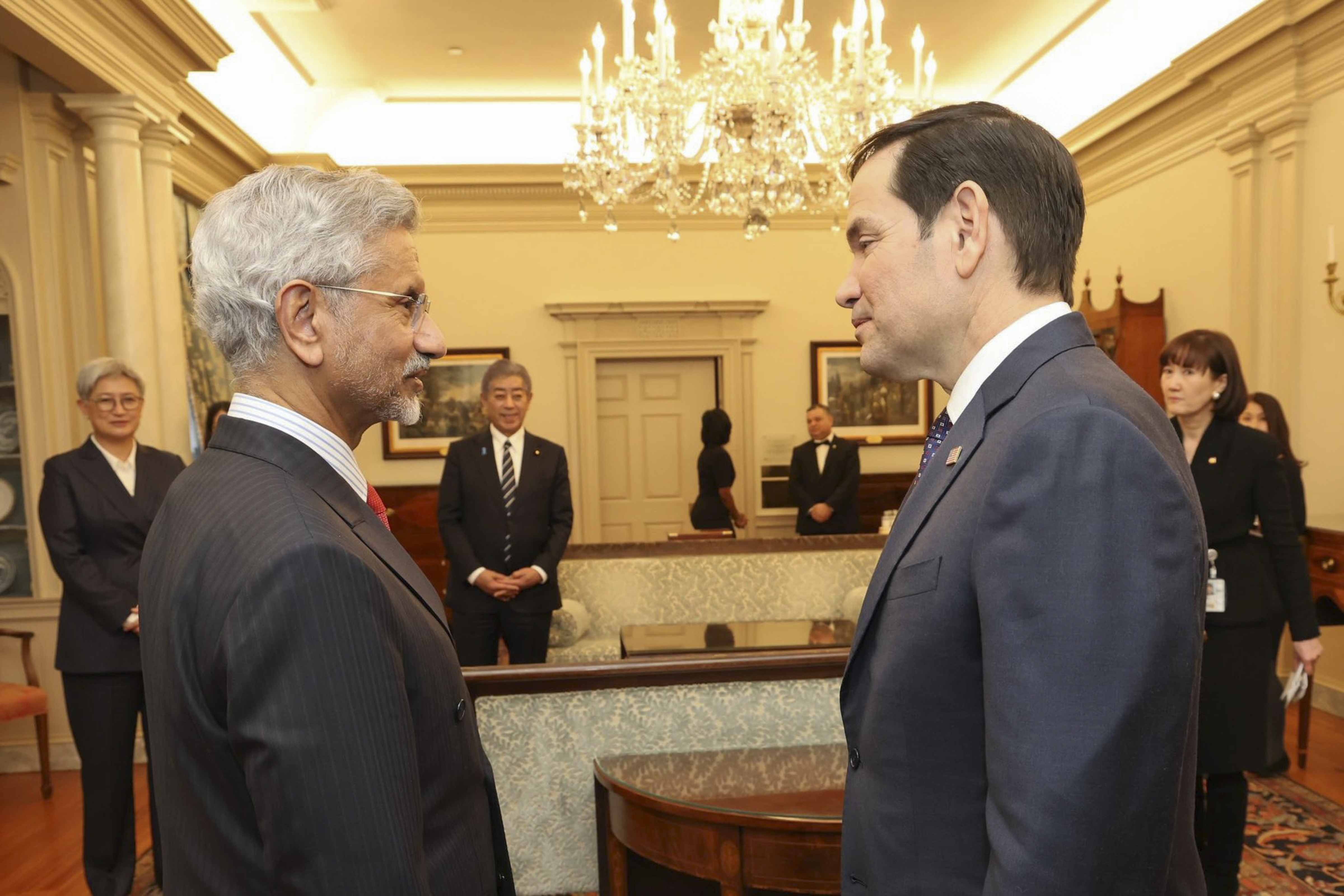जयशंकर ने क्वाड के विदेश मंत्रियों की बैठक के बाद अमेरिका के विदेश मंत्री मार्को रुबियो के साथ द्विपक्षीय बैठक की. अमेरिकी विदेश मंत्रालय के मुताबिक, इस मुलाकात में कई क्षेत्रीय और भारत-यूएस संबंधों को लेकर बातचीत हुई. अमेरिका के विदेश मंत्रालय के अनुसार, "विदेश मंत्री मार्को रुबियो ने वाशिंगटन डीसी में भारत के विदेश मंत्री एस. जयशंकर से मुलाकात की. विदेश मंत्री रुबियो और विदेश मंत्री जयशंकर ने अमेरिका-भारत के बीच साझेदारी को और मजबूत करने की प्रतिबद्धता को दोहराया. उन्होंने क्षेत्रीय मुद्दों, अमेरिका-भारत संबंधों को और गहरा करने समेत कई विषयों पर चर्चा की. इस दौरान विशेष रूप से महत्वपूर्ण और उभरती प्रौद्योगिकियों, रक्षा सहयोग, ऊर्जा और एक स्वतंत्र और खुले हिंद-प्रशांत क्षेत्र को आगे बढ़ाने पर चर्चा हुई. विदेश मंत्री रुबियो ने आर्थिक संबंधों को आगे बढ़ाने और अनियमित प्रवास से संबंधित चिंताओं को दूर करने के लिए भारत के साथ काम करने की डोनाल्ड ट्रंप प्रशासन की इच्छा पर भी जोर दिया."
