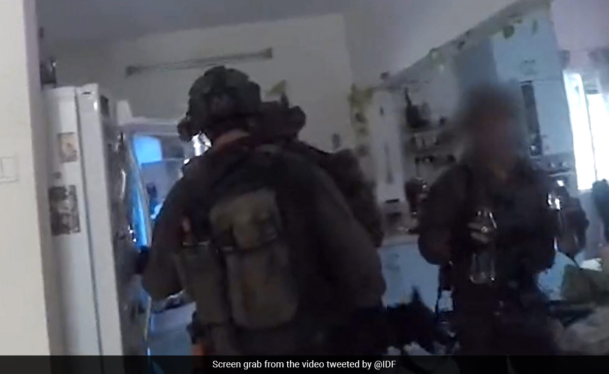 "आप कैसे हैं?" एक सैनिक हिब्रू में एक महिला से कहता है जो दरवाजे के पीछे छिपी हुई है. इसके बाद सैनिक कहता है, "यह आईडीएफ है, यह आईडीएफ है. सब कुछ ठीक है. हैप्पी हॉलिडे, हैप्पी हॉलिडे. क्या आप यहां किसी के साथ हैं?"