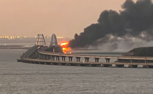 रूस और क्रीमिया को जोड़ने वाले क्रीमिया पुल (Crimean Bridge Collapsed) पर भीषण धामका हुआ, जिससे पुल पर आग लग गई व पुल का एक हिस्सा आंशिक रूप से टूट गया. सोशल मीडिया पर वायरल वीडियो में केर्च जलडमरूमध्य का पुल जलता हुआ दिखाया दे रहा है. इस मामले में रूस ने शनिवार को विस्फोट की आपराधिक जांच शुरू कर दी है. रूस की जांच एजेंसी ने कहा कि उसने "क्रीमिया पुल पर हुई घटना के संबंध में एक आपराधिक मामला दर्ज किया है.