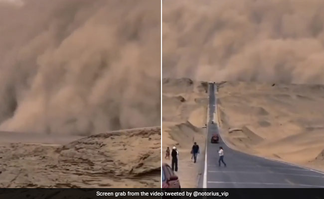 चीन (China) में रेतीले तूफान (Sand Strom) का एक वीडियो वायरल (Video Viral) हो रहा है. चीन के उत्तरी-पश्चिमी क्षेत्र में पिछले हफ्ते ये तूफान उठा था, एक्यूवेदर ( AccuWeather) के अनुसार, यह ताकतवर रेत का तूफान चीन के कंजी (Qinghai) में बुधवार को उठा था. इस वीडियो में दिखता है कि रेत का तूफान रेगिस्तान से आसमान तक उठा हुआ है और तेजी से रास्ते में फंसी गाड़ियों की ओर बढ़ रहा है. तूफान की सीटियों जैसी आवाज़ रूह कंपा देने वाली है.
