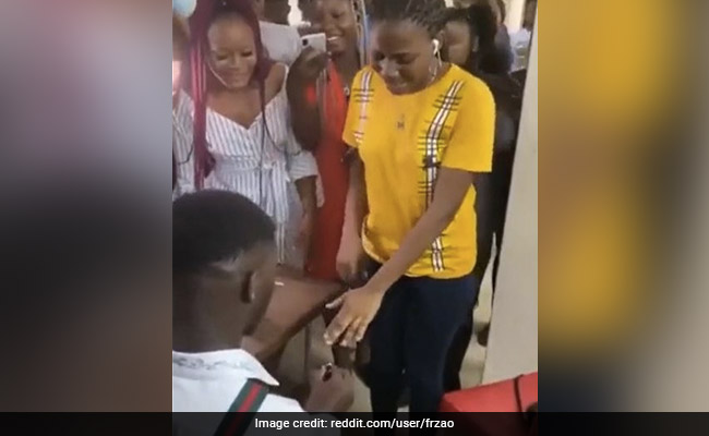 Proposal Gone Wrong: प्यार (Love) का इज़हार हर इंसान के लिए अलग होता है. अक्सर कई लड़कियों का ख़्वाब होता है कि कोई लड़का उन्हें सबसे सामने घुटनों पर बैठक कर, हाथ में अंगूठी (Ring) लेकर पूछे- क्या मुझसे शादी करोगी? अक्सर हम शादी का प्रस्ताव देते हुए ऐसे कई वीडियो (Proposal Video) देखते हैं. लेकिन सोशल मीडिया (Social Media) पर एक ऐसा वीडियो वायरल (Viral) हो रहा है, जिसमें लड़की को जब अंगूठी के साथ शादी का प्रस्ताव मिलता है तब वो लगभग अपना आपा खो देती है. रेडइट पर पोस्ट किए गए वीडियो में दिखता है कि एक सफेद रंग की शर्ट पहन कर लड़का अपने घुटनों पर बैठा है और एक पीले रंग की टीशर्ट पहने लड़की उसके सामने खड़ी है जो लड़के के हाथ में अंगूठी देख कर बहुत भावुक हो जाती है. वह लगभग कांपते हुए अंगूठी पहनाने के लिए अपना हाथ आगे बढ़ाती है.