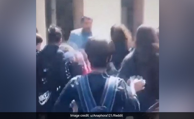 ईरान (Iran) में स्कूल की लड़कियां (School Girls) महसा अमीनी की मौत (Mahsa Amini Death) के बाद हो रहे विरोध प्रदर्शनों (Protests) में उतर आई हैं. उन्होंने अपने हिजाब (Hijab) उतार कर रैली की और सुरक्षा बलों की ओर से हिंसक कार्रवाई की चेतावनियों को अनदेखा कर दिया. हिजाब उतार कर स्कूल की लड़कियों ने तेहरान के पश्चिम में स्थित करज में एक आदमी को स्कूल से बाहर कर दिया. इस आदमी को स्कूल का प्रिंसिपल बताया जा रहा है. एएफपी के अनुसार, लड़कियों ने सोमवार को यह बड़ा कदम उठाया. सोशल मीडिया पर एक वीडियो शेयर किया जा रहा है जिसमें बताया जा रहा है कि ईरान की स्कूल की लड़कियों ने सरकार समर्थक स्कूल के डायरेक्टर को स्कूल के कैंपस से निकाल दिया.