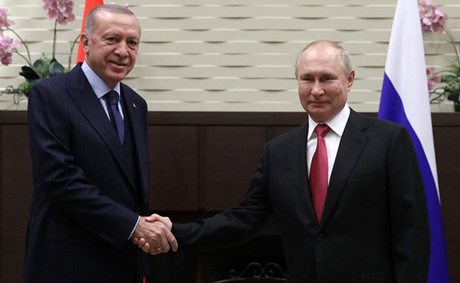 यह वीडियो दिखाती है कि रूसी नेता अधीरता से 50 सेकेंड तक अपनी कुर्सी के सामने अपने हाथ बांधे इंतजार कर रहे थे. वहां दोनों देशों के झंडे लगे थे. पुतिन का मुंह टेढ़ा होने लगा था और उनका रुख बदलने लगा था लेकिन फिर एर्दोगान आ पहुंचे. पुतिन ने उनकी तरफ अपना हाथ बढ़ाया.