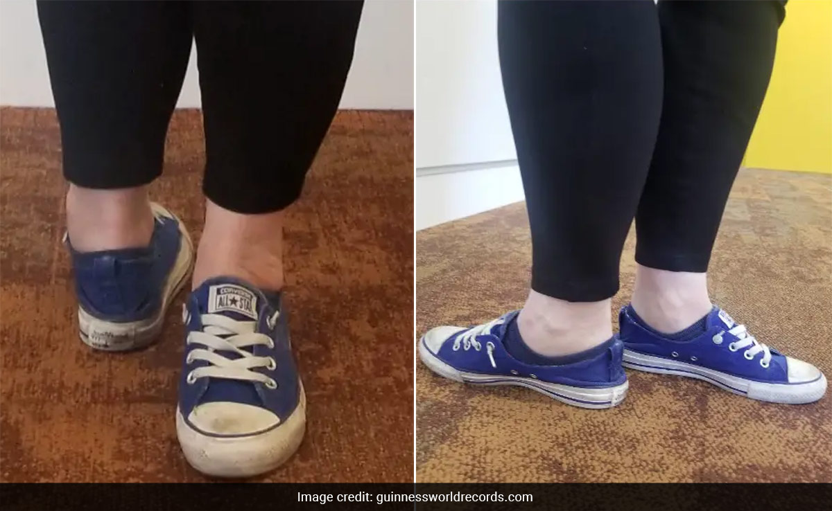 बता दें कि हाल ही में न्यू मैक्सिको की 32 वर्षीय केल्सी ग्रब ने अपने पंजों को 171.4 डिग्री तक घुमाकर एक नया गिनीज वर्ल्ड रिकॉर्ड बनाया है, जिसे देखकर लोग हैरान हैं. जो काम आम आदमी के लिए नामुमकिन है, वो काम केल्सी ग्रब के लिए बड़ा ही आसान है. तस्वीरों में देखा जा सकता है कि, महिला ने अपने दोनों पैरों के पंजों को पूरा रोटेट कर रखा हैं. तस्वीर में आगे का पंजा पीछे और पीछे का पंजा आगे देखा जा सकता है.