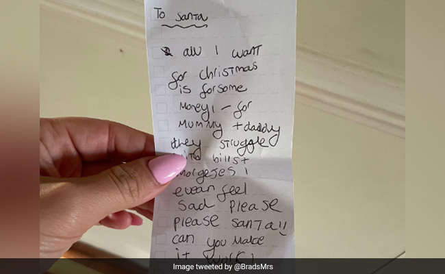 अपने लिए उपहार मांगने के बजाय, मासूम बच्ची ने सांता से अपने माता और पिता को उनके लिए पैसों के साथ मदद करने को कहा, क्योंकि वे ''बिल और कर्ज को पूरा करने के लिए काफी संघर्ष कर रहे है.''