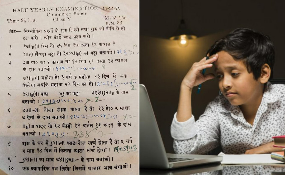 Viral 1943 Fifth Class Exam Paper: बदलते समय में शिक्षा का तरीका भी बदला है. पहले के समय में जिस तरह पढ़ाई होती थी, उसके मुकाबले आज के समय में स्कूलों में जो पढ़ाई कराई जाती है, उसे सीखना आसान है. पहले छात्रों के पास स्मार्ट क्लासेज़ और गूगल नहीं था, लेकिन आज के बच्चों के पास यह सारी सुख-सुविधाएं हैं, जिसके जरिए बच्चे किसी भी विषय जैसे गणित, विज्ञान, कॉमर्स और इकॉनोमिक्स जैसे विषयों के पेपर आसानी से हल कर सकते हैं. हाल ही में एक ऐसा ही प्रश्न पत्र वायरल हो रहा है, जो की 5वीं कक्षा का है, लेकिन इसे हल करने में अच्छे-अच्छे एक्सपर्ट्स के भी पसीने छूट रहे हैं.