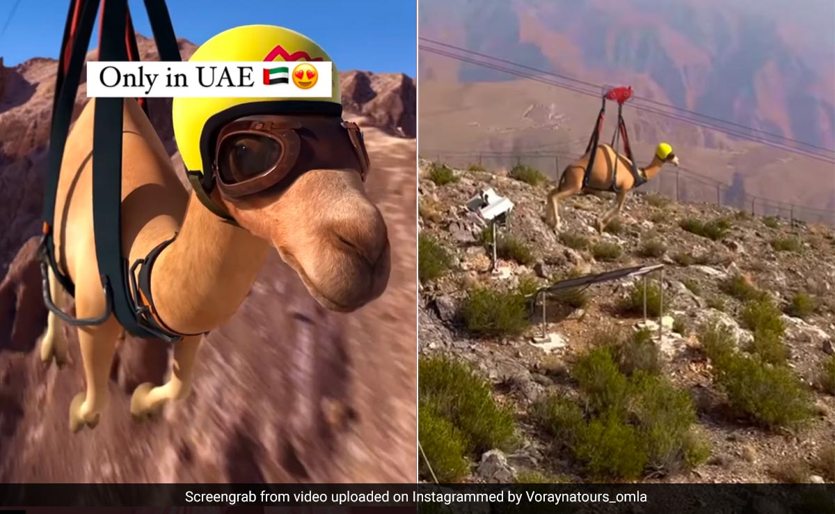 Camel Enjoying Zip Line In UAE Video: आज के समय में ज्यदाातर लोग एडवेंचर के दीवाने हैं, जिसके लिए लोग बड़े-बड़े पहाड़ों को भी चढ़ने का साहस रखते हैं. आपने अब तक इंसानों को ही एडवेंचर करते देखा या सुना होगा, लेकिन क्या कभी आपने किसी जानवर को एडवेंचर करते देखा है. अगर आपका जवाब न है, तो इस वीडियो को देखना तो बनता है. वीडियो में एक ऊंट जिपलाइनिंग का मजा लेता नजर आ रहा है. हैरानी की बात तो यह है कि, ये दुनिया की सबसे लंबी जिपलाइनिंग है, जिस पर ऊंट स्टंटबाजी करता नजर आ रहा है.