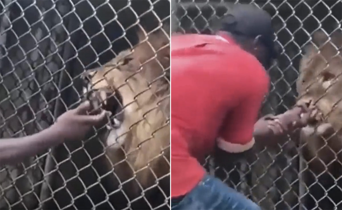 ऊंगलियों को नाश्ता समझ गया शेर
