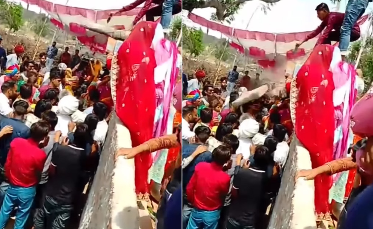 वीडियो में देखा जा सकता है कि, एक गांव में शादी (Indian Wedding Viral Videos) फंक्शन चल रहा होता है. रीति-रिवाज (marriage rituals) देखने वहां चारों ओर से लोगों की भीड़ जमा हुई होती है. कुछ लोग पास से, तो कुछ लोग दूर से शादी (shadi ka video) की रीति-रिवाज (wedding rituals) को पूरा होते देख रहे होते हैं. वहीं कुछ लोग दीवार पर खड़े होकर वीडियो (shooting video) बना रहे होते हैं. वीडियो में देखा जा सकता है कि, एक लड़का दीवार पर लगे पत्थर के सहारे मोबाइल (mobile) से वीडियो शूट कर रहा होता है. इस बीच दूल्हा (groom)-दुल्हन (bride) शादी की रस्में निभा रहे थे होते हैं कि, अचानक दीवार पर लगा एक बड़ा सा पत्थर नीचे खड़े दूल्हे पर गिर जाता है, जिसके बाद दूल्हा (bride and groom) बेहोश होकर जमीन पर गिर पड़ता है और चीख पुकार मच जाती है.