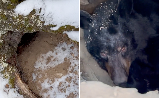 वीडियो में देखा जा सकता है कि, चारो तरफ बर्फ ही बर्फ पड़ी हुई है. इस दौरान कुछ शख्स ठंड से बचने के लिए एक जगह ढूंढ रहे होते हैं. इसी दौरान उनकी नजर एक गुफा पर पड़ती है, जिसमें घुसते ही उनकी हालत पतली हो जाती है. दरअसल, गुफा में उनके घुसने से पहले ही एक काला जंगली भालू आराम फरमा रहा होता है. भालू को देख शख्स की हालत खराब हो जाती है और अपने दोस्तों को लेकर वहां से दूर चला जाता है. वीडियो में शख्स की डर से भरी आवाज को सुना जा सकता है.