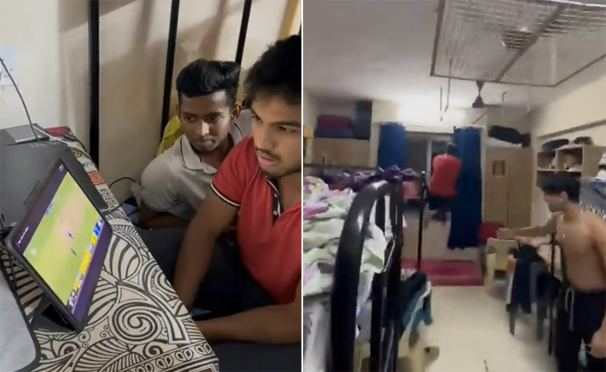 ट्विटर पर शेयर हुए इस वीडियो में आप सीएसके के एक फैन को टीम की जीत के बाद अजीबोगरीब तरीके से खुशी मनाते देख सकते हैं. ये किसी हॉस्टल का वीडियो लग रहा है, जिसमें टैबल पर बैठ कर कुछ लड़के मैच देख रहे होते हैं और जैसे ही सीएसके जीतती है, वो जोर-जोर से चिल्लाने लगते हैं. एक लड़का गेट को पीटता, चीजों को तोड़ता और गला फाड़ कर चिल्लाता दिखता है. वीडियो को कैप्शन देते हुए लिखा है, ‘लड़कियां: लड़कों में कोई इमोशन नहीं होते. एकदम इमोशनलेस होते हैं ये लोग. इस बीच लड़के.'
