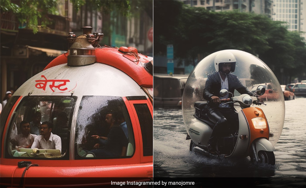 मुंबई शहर बाकी सभी चीज़ों के अलावा अपनी बारिश के लिए भी मशहूर है. शहर के कई हिस्सों में मौसम को रोमांटिक बनाने वाली इंस्टाग्राम स्टोरीज के अलावा, यह सड़कों पर अराजकता को बढ़ाती है. पूरे मुंबई में बाढ़ और जलभराव एक आम दृश्य बन गया है, खासकर सबवे में. यह जीवन को बाधित करता है और कभी-कभी मृत्यु और विनाश की ओर भी ले जाता है. लगभग हर साल, जुलाई से सितंबर के महीनों के दौरान बारिश से शहर जाम हो जाता है. इस बीच, एक कलाकार ने कृत्रिम बुद्धिमत्ता (artificial intelligence) का इस्तेमाल करके आधुनिक वाहनों की कल्पना की, जिन्हें बारिश के कहर से लड़ने के लिए शहर में होना चाहिए.