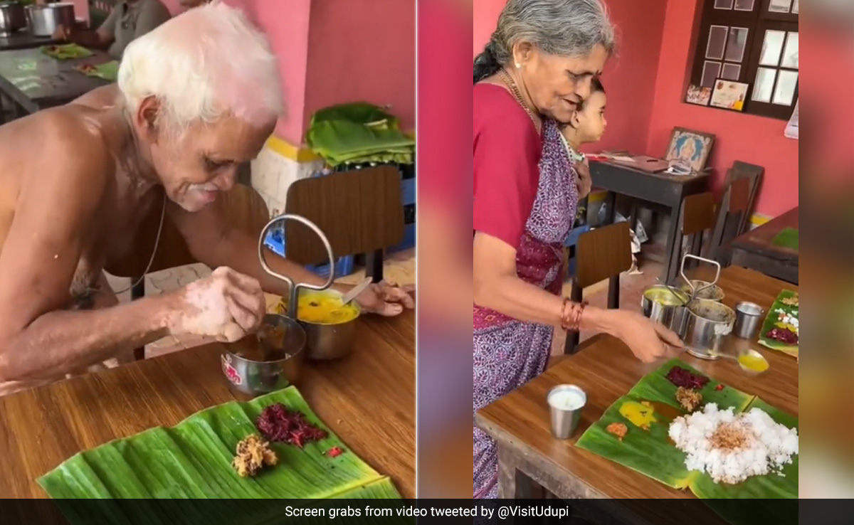 इन दिनों इंटरनेट पर कर्नाटक के मणिपाल के रहने वाला ये बुजुर्ग कपल चर्चा का विषय बना हुआ है. वीडियो में 80 के दिख रहे यह अज्जा-अज्जी अपनी नेकी की वजह से लोगों का ध्यान अपनी ओर खींच रहे हैं. वीडियो में देखा जा सकता है कि, एक छोटे से भोजनालय में कई लोग बैठे हुए हैं, जो पारंपरिक तरीके से केले के पत्तों पर परोसा गए खाने का स्वाद चख रहे हैं. बेहद कम रुपयों में मिल रहे खाने में रसम, दाल, फ्राई, अचार, सलाद, दही समेत कई वैरायटी मौजूद है, जो लोगों को काफी पसंद आ रही है.