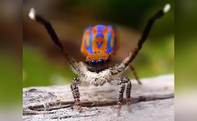 हैरान कर देने वाले इस वीडियो में एक सुंदर सी मकड़ी दिखाई दे रही है, जिसके सिर पर एक अजीबोगरीब संरचना देखी जा सकती है, लोगों के हैरत में डाल रही है. वीडियो में दिख रही मकड़ी, बाकी मकड़ियों से थोड़ी छोटी है, जो पेड़ की छाल पर दाएं बाएं झूमते हुए दिखाई दे रही है. इस दौरान उसके ऊपर रंग बिरंगे पंख देखे जा सकते हैं, जो हूबहू मोर की तरह लग रहे हैं. दरअसल मकड़ी के सिर पर मोर के पंखों की तरह रंग बिरंगी झिल्ली बनी नजर आ रही है, जिसे मकड़ी उठाकर लहराते देखी जा रही है. इस क्लोजअप वीडिओ में मकड़ी किसी मोर की तरह अपने रंगीन पंख फैलाकर झूमते हुए दिखाई दे रही है, जिसे देखने के बाद लोग इसे 'पीकॉक स्पाइडर' नाम दे रहे हैं.