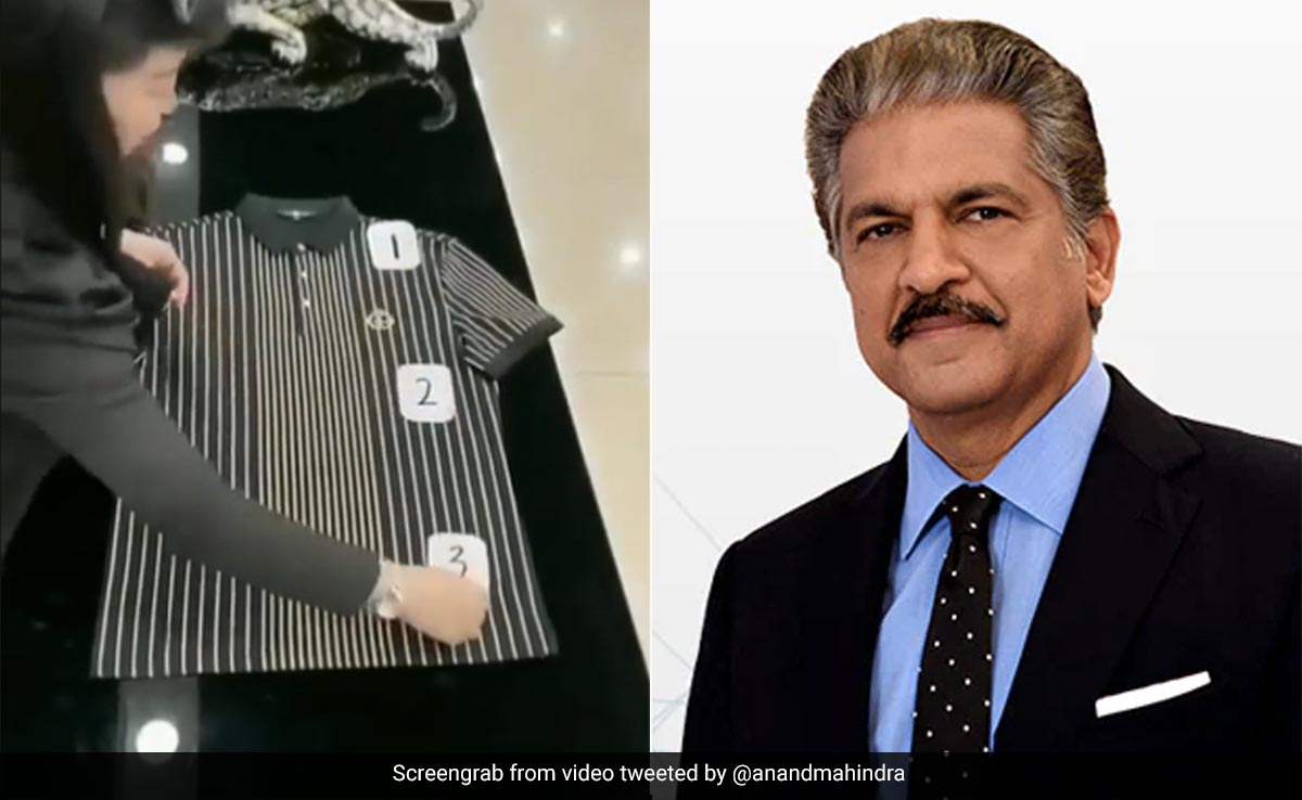 महिंद्रा द्वारा ट्विटर पर शेयर किए गए वायरल वीडियो में एक महिला को टी-शर्ट को मोड़कर तह लगाते हुए देखा जा सकता है. उसने कपड़े के टुकड़े के एक तरफ लिखे 1,2 और 3 नंबर वाले छोटे कार्ड रखे और उन्हें उसी जगह से जल्दी और तुरंत मोड़ा, जहां नंबर रखे थे.