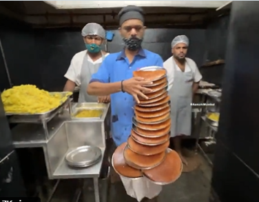 हालांकि, वेटर (waiter) ने हाथ पर केवल दो या तीन प्लेटें नहीं रखीं, बल्कि एक हाथ में 16 प्लेटें एकसाथ रखकर ले गया. हां, आपने बिल्कुल सही पढ़ा. 2 मिनट से अधिक की इस क्लिप में, उसे बाद में भूखे ग्राहकों को गर्मागर्म डोसा परोसते हुए देखा जा सकता है.
